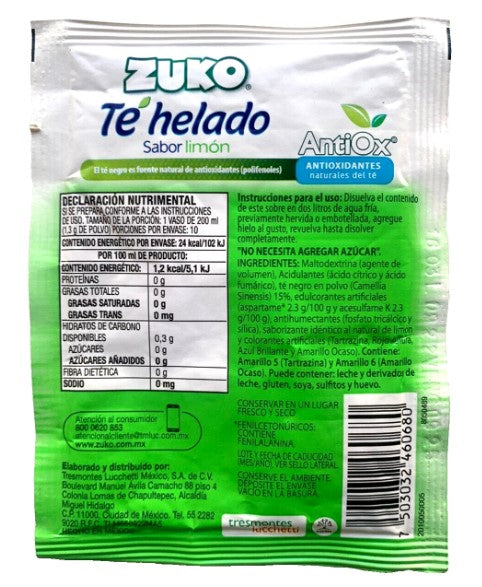 12-Pk ZUKO Cold Tea Lemon Flavored Powdered Drink Mix 13g/.45oz