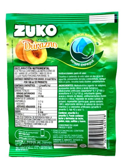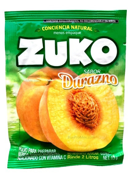 Experience the sweet taste of summer with ZUKO Durazno/Peach Powder Drink. Our 12-pack offers a delicious peach mix that is perfect for any occasion. Each serving contains 13g of flavor-packed powder that can be easily mixed with water for a refreshing and fruity drink.
