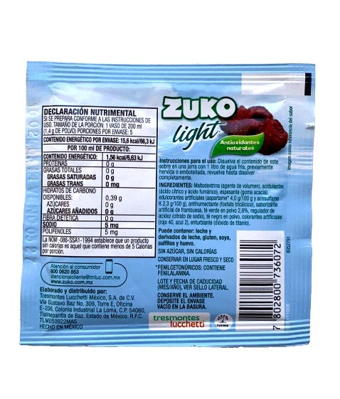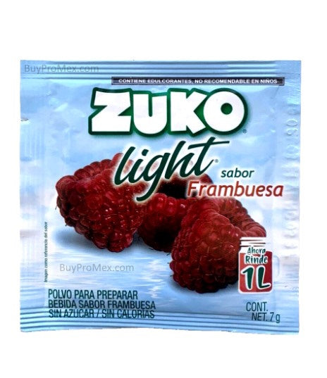 Experience the refreshing taste of 12 packets of Zuko Light Frambuesa/Raspberry drink mix. Each 7g/.24oz packet contains the perfect blend of real raspberries and powdered mix, providing a delicious and convenient refreshment option. Just add water and enjoy the 100% natural flavors without any added preservatives or artificial colors.