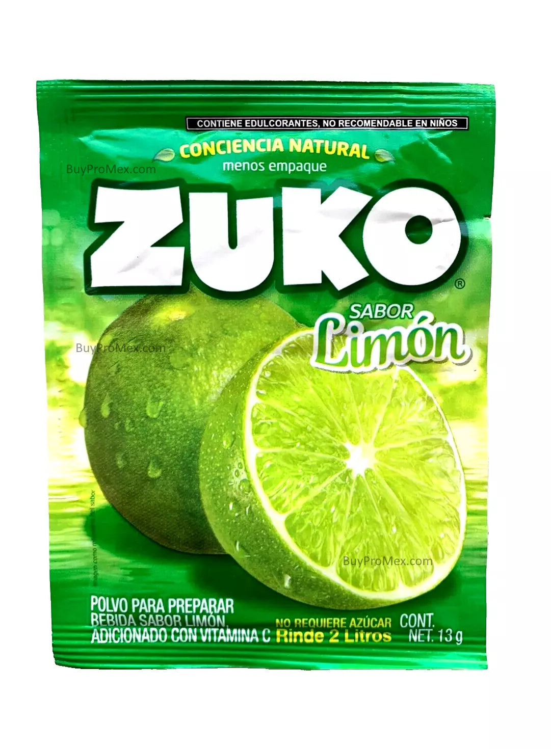 Get a taste of Mexico with 12-Pk ZUKO Limon/Lemon flavored powdered drink mix. Each pack contains 13g/.45oz of refreshing, tangy flavor. Just add water for a quick and easy beverage. Perfect for on-the-go or to simply enjoy at home.