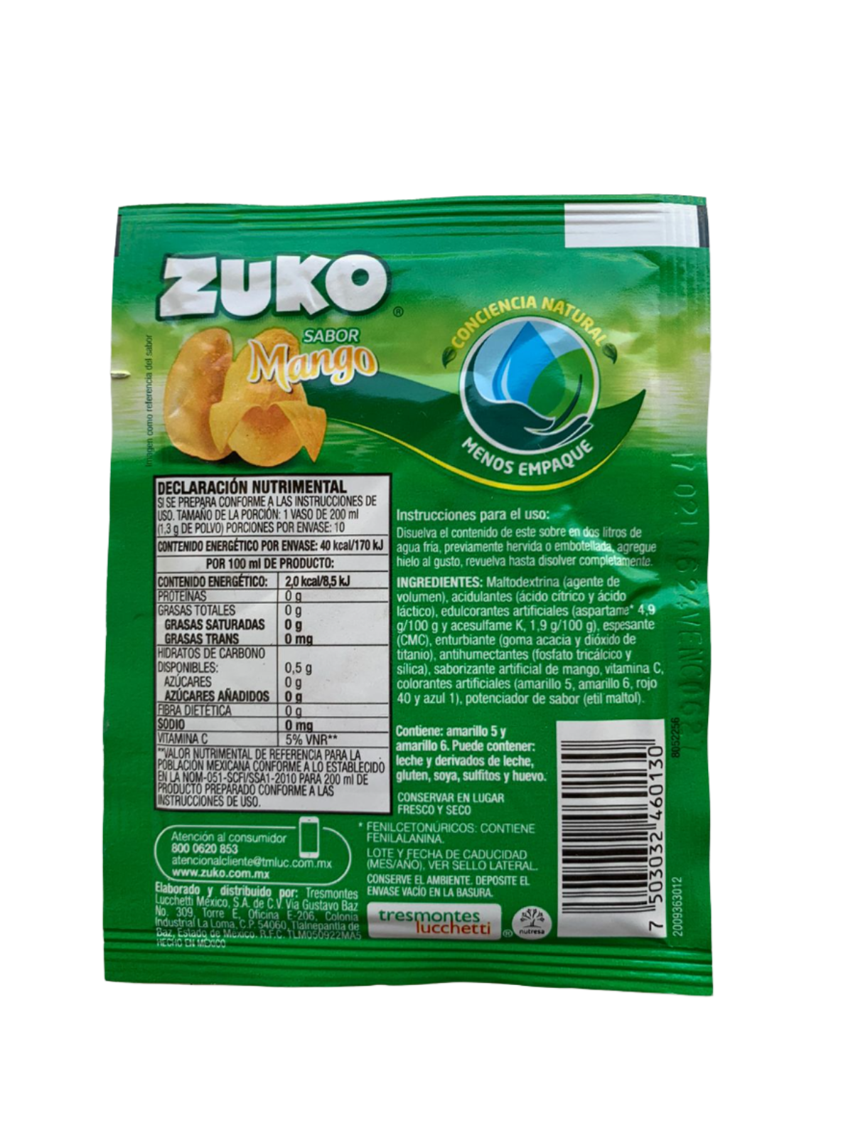 Indulge in the delicious taste of Mexican mango with this 12-pack ZUKO powdered drink mix. Each packet contains 13g of flavorful and refreshing powder that you can easily mix with water for a tasty and energizing drink. Enjoy the tropical flavors and convenience of this convenient and portable drink mix.