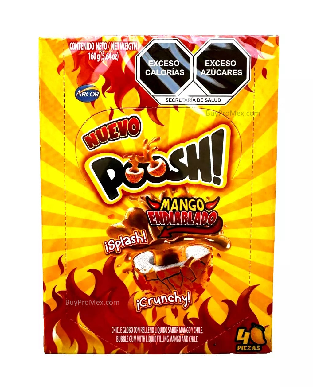 Experience a fiery burst of flavor with our 2-pack Poosh! Mango Endiablado/ Poosh! Spicy Mango Bubble Gum. Made in Mexico, this spicy mango flavored bubble gum will leave your taste buds tingling. Each pack contains 160gr/5.64oz of delicious gum. Satisfy your craving for something spicy and sweet, and try it today!