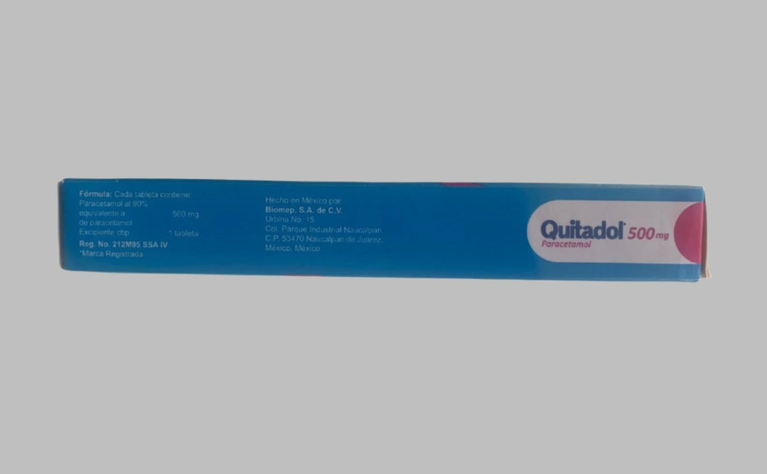 Quitadol (Paracetamol) is a highly effective medication developed in Mexico. Each tablet contains 500mg of Paracetamol, providing powerful and fast relief for pain and fever. Trust in the quality and expertise of Mexican pharmaceuticals for your health needs.