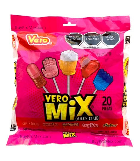 Introducing the 2-pack of Vero Assorted Lollipops! Contains 20 delicious Mexican lollipops, perfect for satisfying your sweet tooth. Each pack weighs 290g/10.22oz, providing plenty of treats for you and your friends. Get ready to enjoy a taste of Mexico with our assortment of flavors!