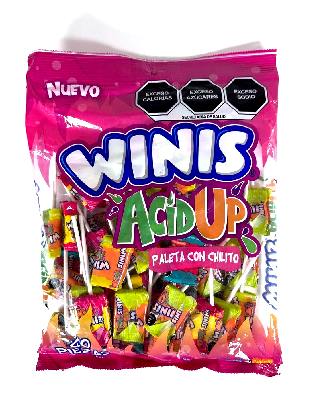 2-Pk Winis AcidUp Chili Flavored Taffy Lollipops 40pcs 280g
