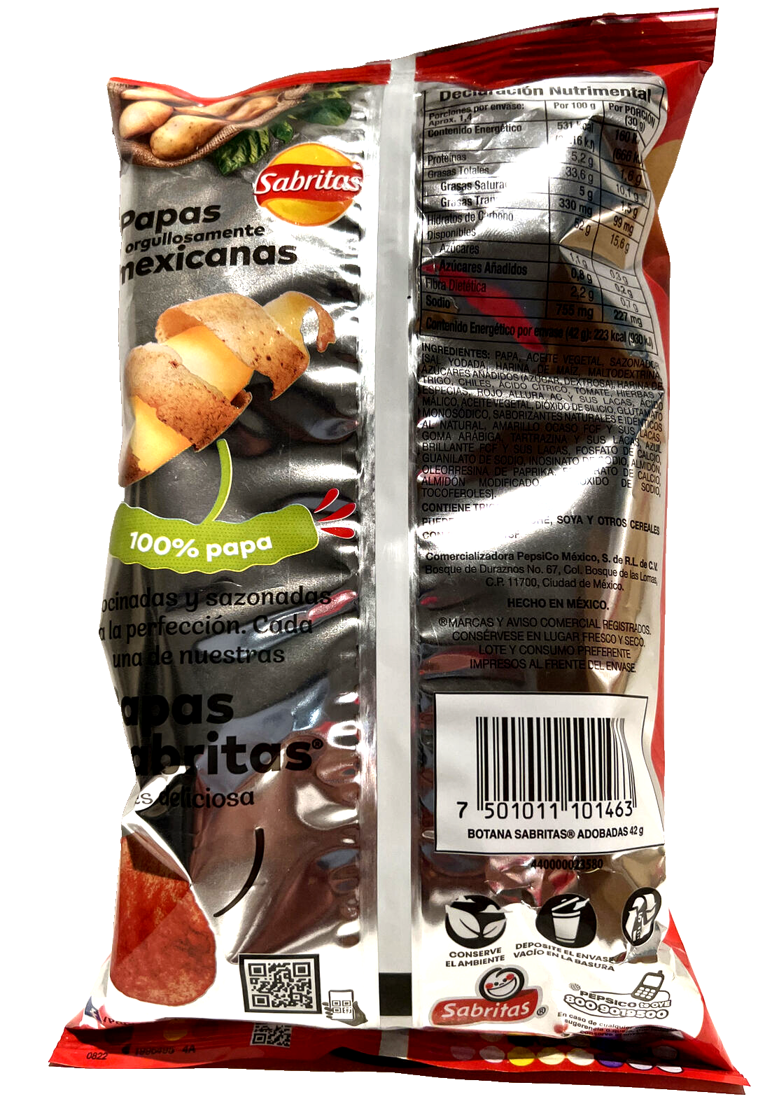 Sabritas Adobe Flavored Potato Chips are a delicious and savory snack. Made with authentic Adobe seasoning, each 42g bag (1.48 oz) delivers a burst of flavor that will satisfy your taste buds. Enjoy this unique and flavorful chip as a tasty treat anytime, anywhere.