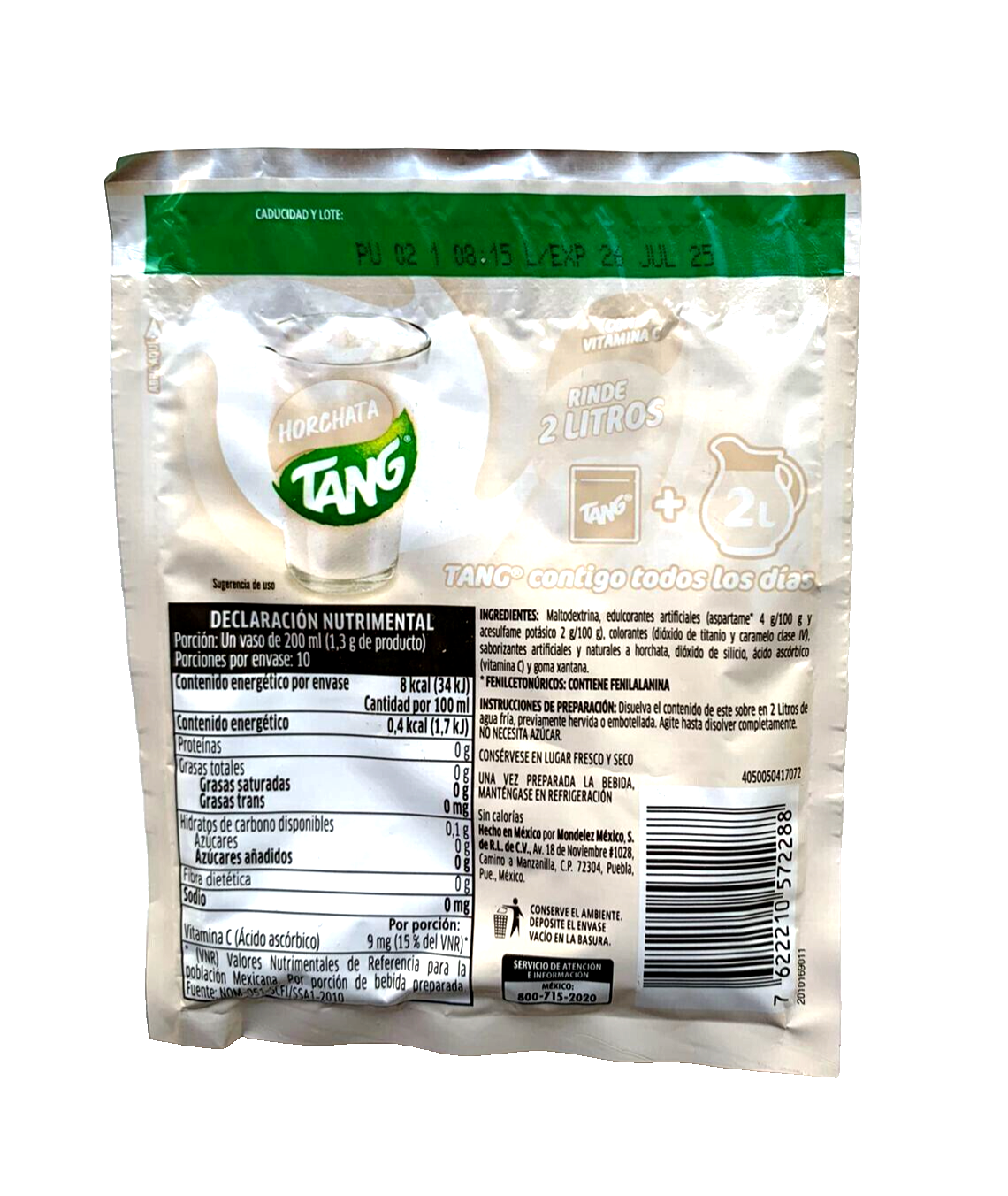 Introducing our 12-pack TANG Horchata Flavor Powder Drink Mix! Enjoy the traditional taste of Mexican Horchata with our convenient powder mix, perfect for on-the-go or at home. Each packet contains 14g/.4oz of mix, providing a delicious and refreshing beverage every time.