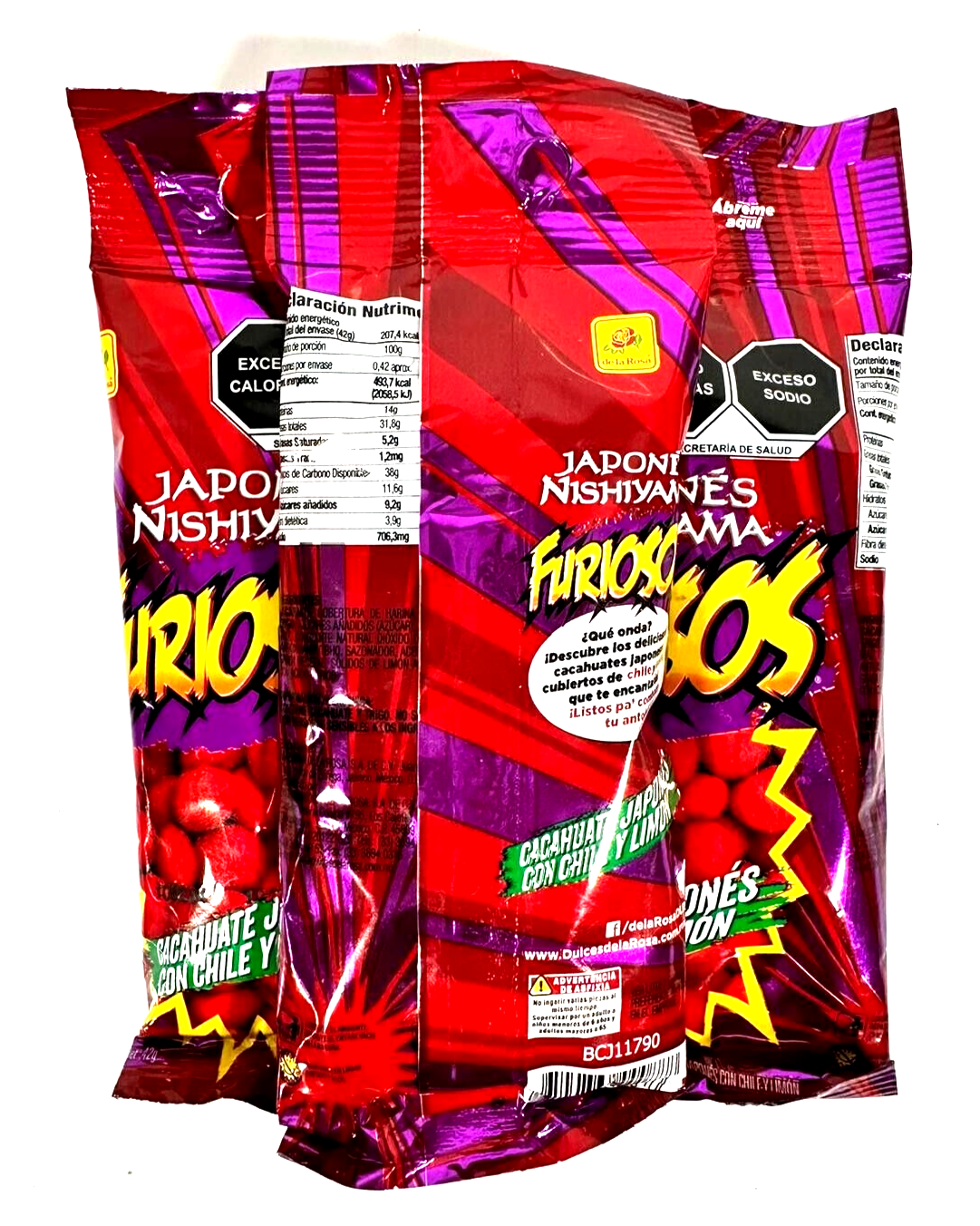 6-Pk De La Rosa Cacahuate Japones Furiosos Chile y Limon 42g/ 1.48oz