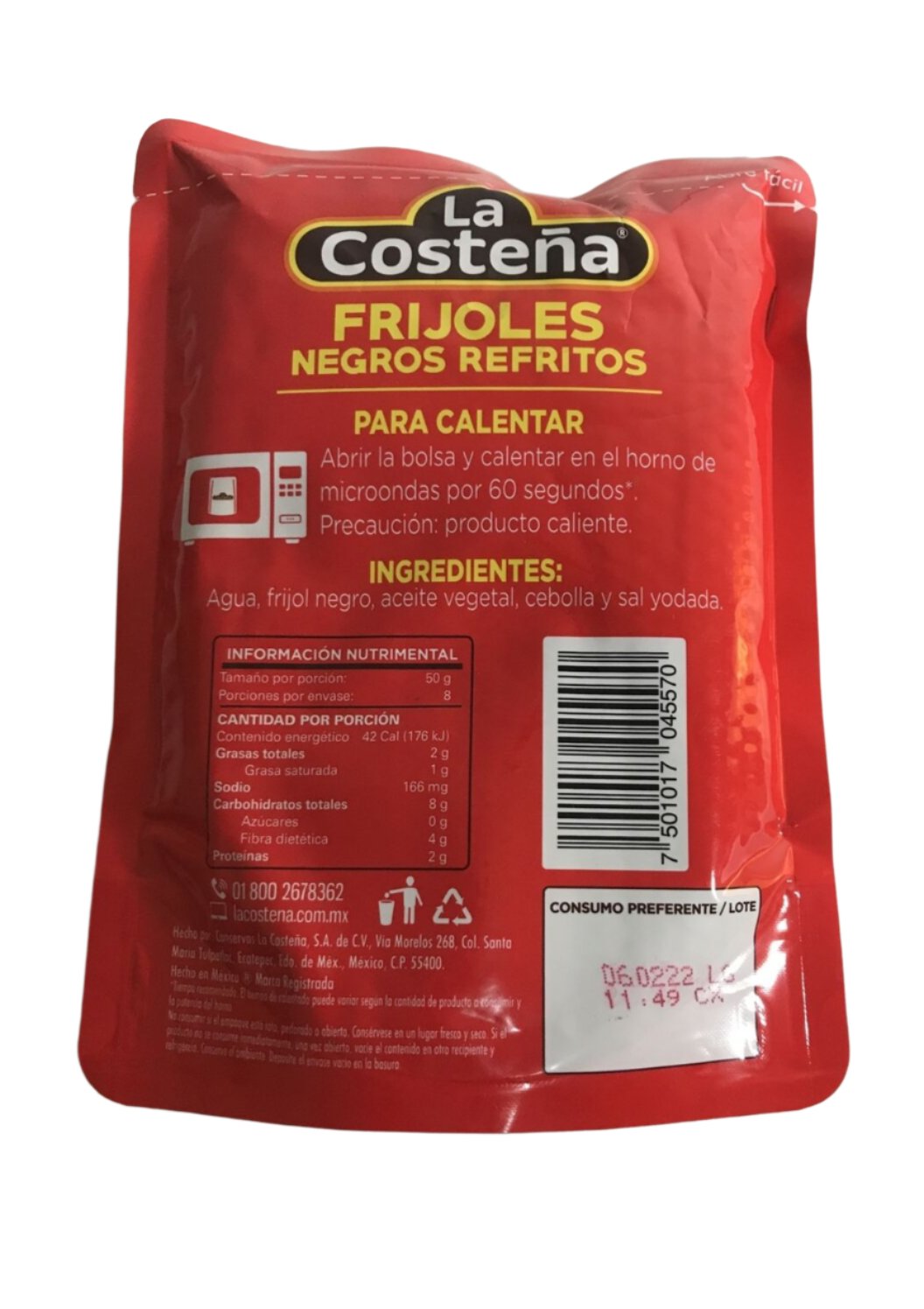 Experience the rich and authentic flavor of La Costeña Black Refried Beans. Made with high-quality black beans, each can is packed with protein and fiber for a nutritious addition to any meal. Each 400gr/14.11oz can provides enough for a 4-pack, bringing convenience and depth to your favorite dishes.