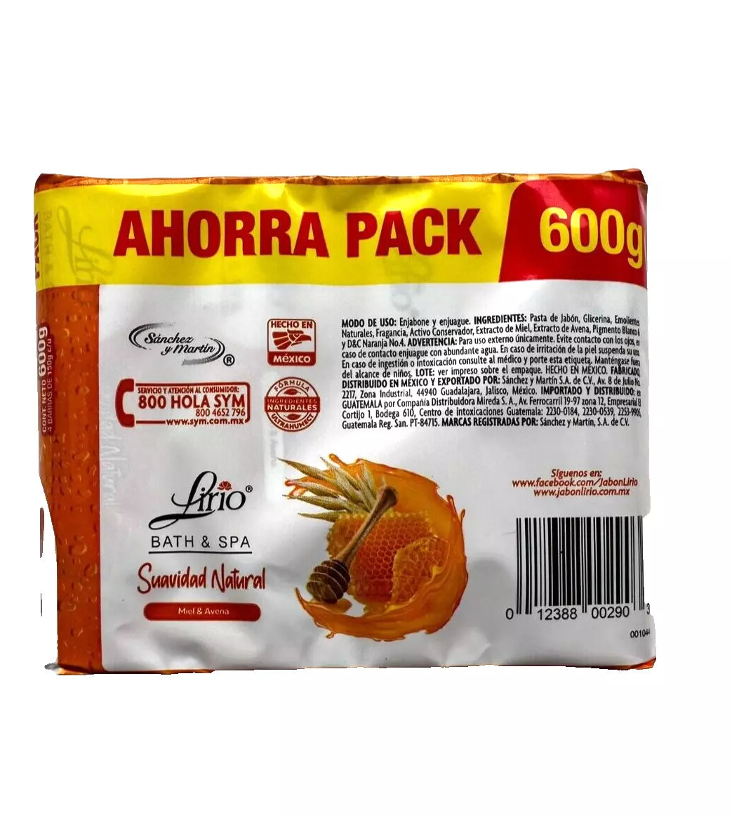 Discover the nourishing benefits of Lirio Bath&Spa Miel&Avena soap! Crafted in Mexico, this 4-pack soap is made with honey and oatmeal extracts to soothe and moisturize your skin. Each bar contains 150g/5.29oz, providing you with a luxurious and natural spa experience.