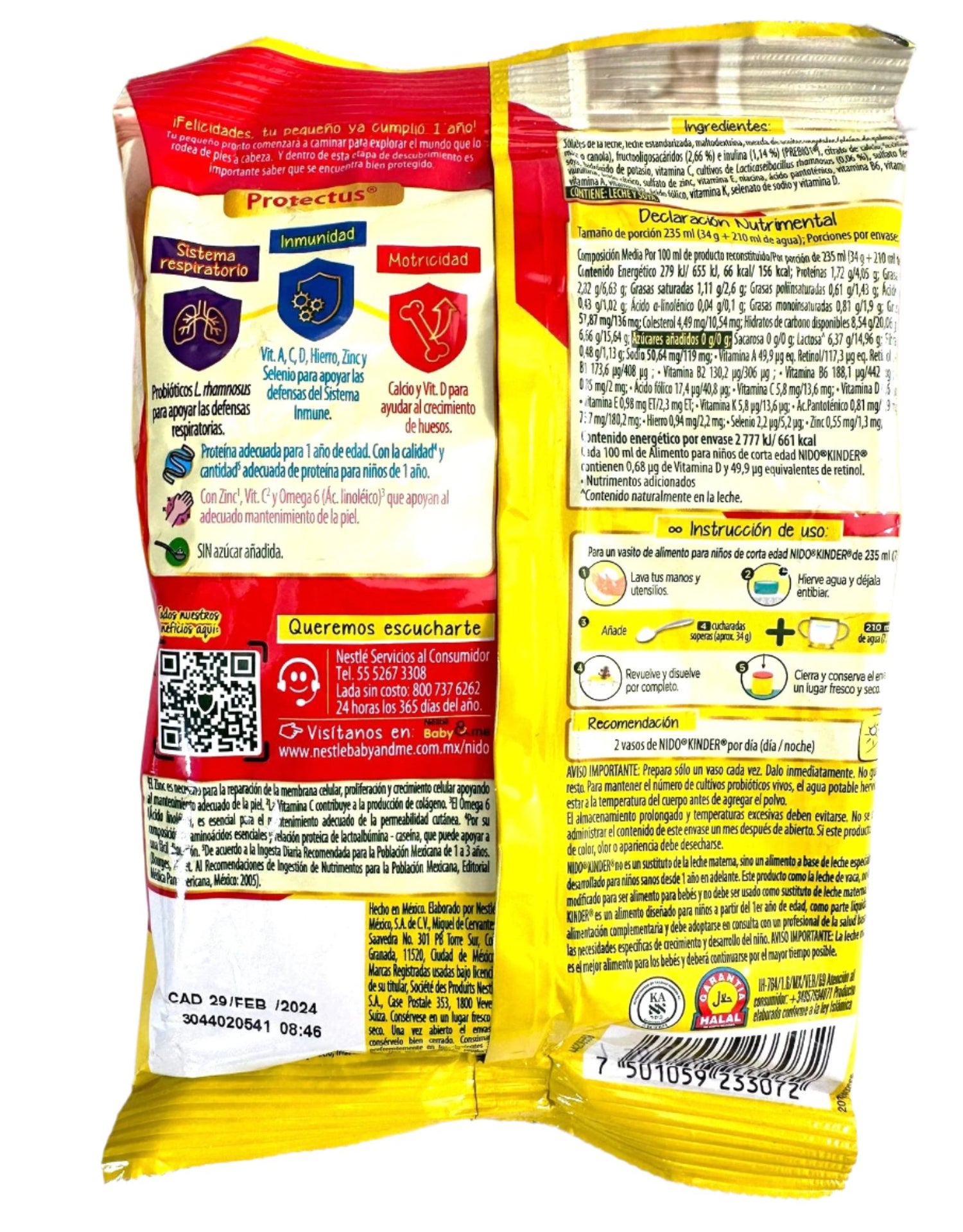 Expertly formulated for children ages 1-3, this 6-Pack Nestlé Powdered Milk provides essential nutrients for growing bodies. Made with high-quality ingredients, including Nido Leche Polvo, this Mexican powdered milk is a delicious and convenient way to ensure your child has a balanced diet.