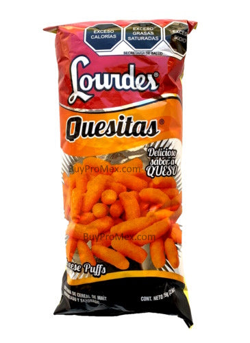 Elevate your snack game with our 5-pack of Lourdes Quesitas and Cheesy Puffs. These authentic Mexican cheese puffs are made with real Lourdes cheese, adding a touch of sophistication to your everyday snacking. Satisfy your cravings with these 75g/2.64oz bags of cheesy goodness.