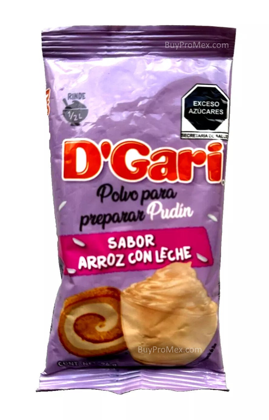 Indulge in a taste of luxury with D'Gari Rice Pudding Flavored Pudding Mix. Made with authentic Mexican flavors, this indulgent dessert is sure to please. Each 96g/3.38oz pack contains 6 servings of creamy, rich rice pudding, perfect for satisfying your cravings for a sophisticated treat. Elevate your dessert game with D'Gari.