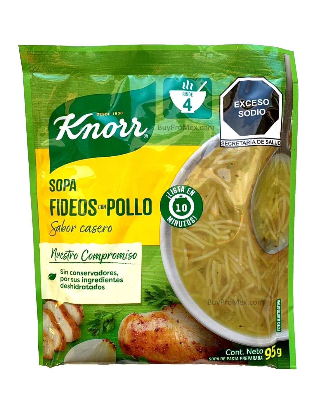 This 6-pack of Knorr Chicken Noodle Soup offers a savory and hearty Mexican twist on the classic soup. Each 95g/3.3oz packet contains quality ingredients that provide a flavorful and satisfying meal. Enjoy the convenience and deliciousness of this soup pack in your home.