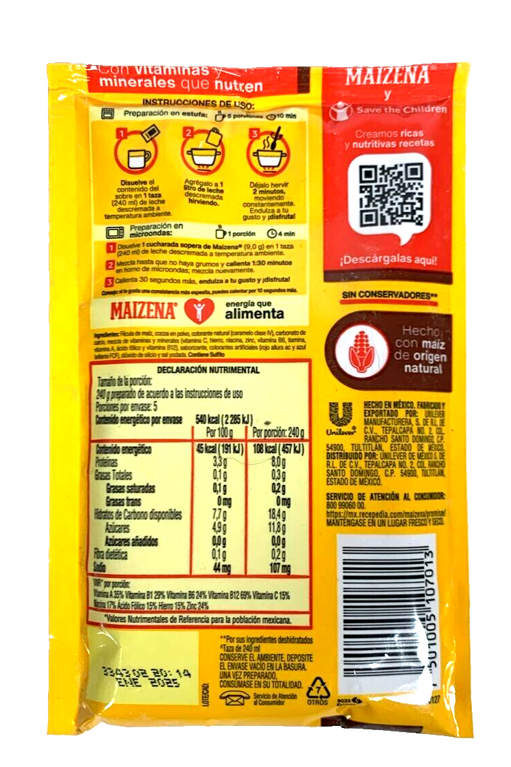 6-Pk Maizena Chocolate flavor corn beverage mix / Sabor chocolate 47gr/1.6oz