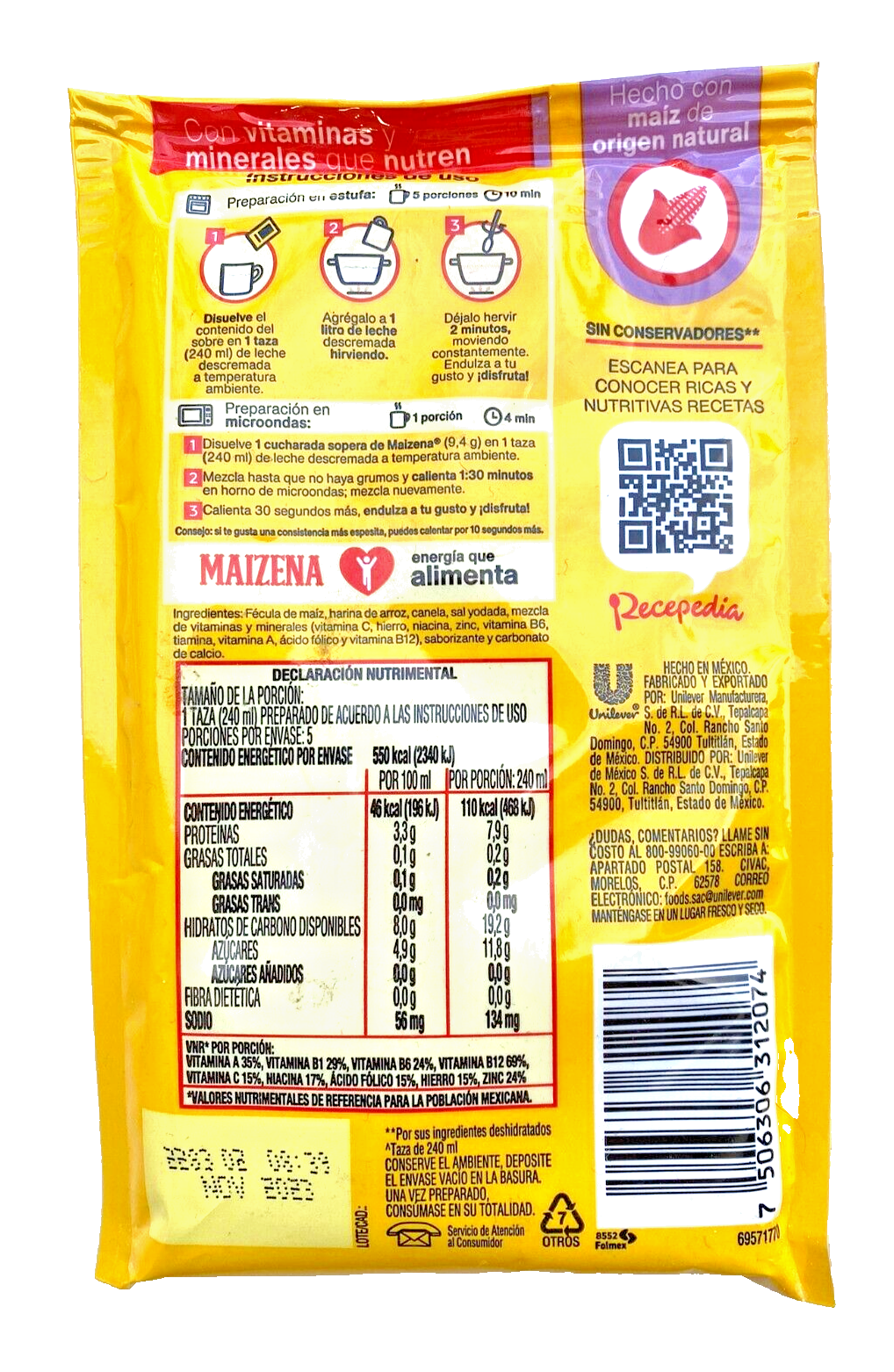 6-Pk Maizena Rice pudding flavored corn beverage mix/ Maizena Arroz con Leche 47gr/1.6oz