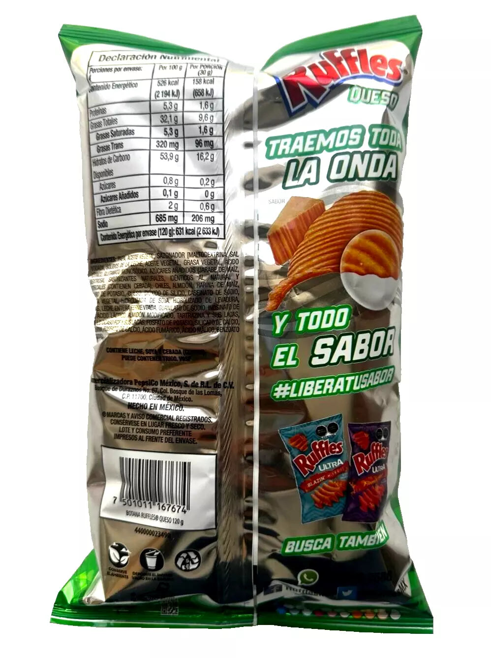 6-Pk Ruffles Queso/ Mexican Ruffles Cheese Potato Chips Sabritas 120gr/4.23oz