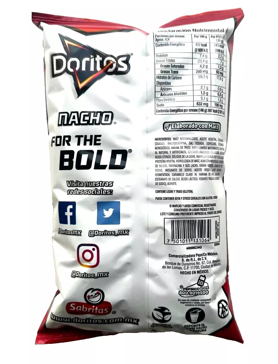 Introducing the 6-pack of Sabritas Doritos Nacho/Mexican Nacho Doritos, the perfect snack for any occasion. These nacho cheese flavored chips will satisfy your cravings with every crunchy bite. Get your hands on this premium and exclusive product today.