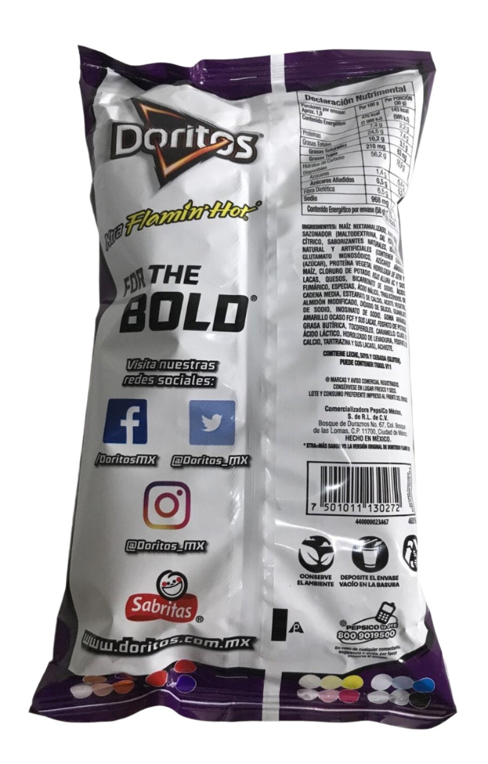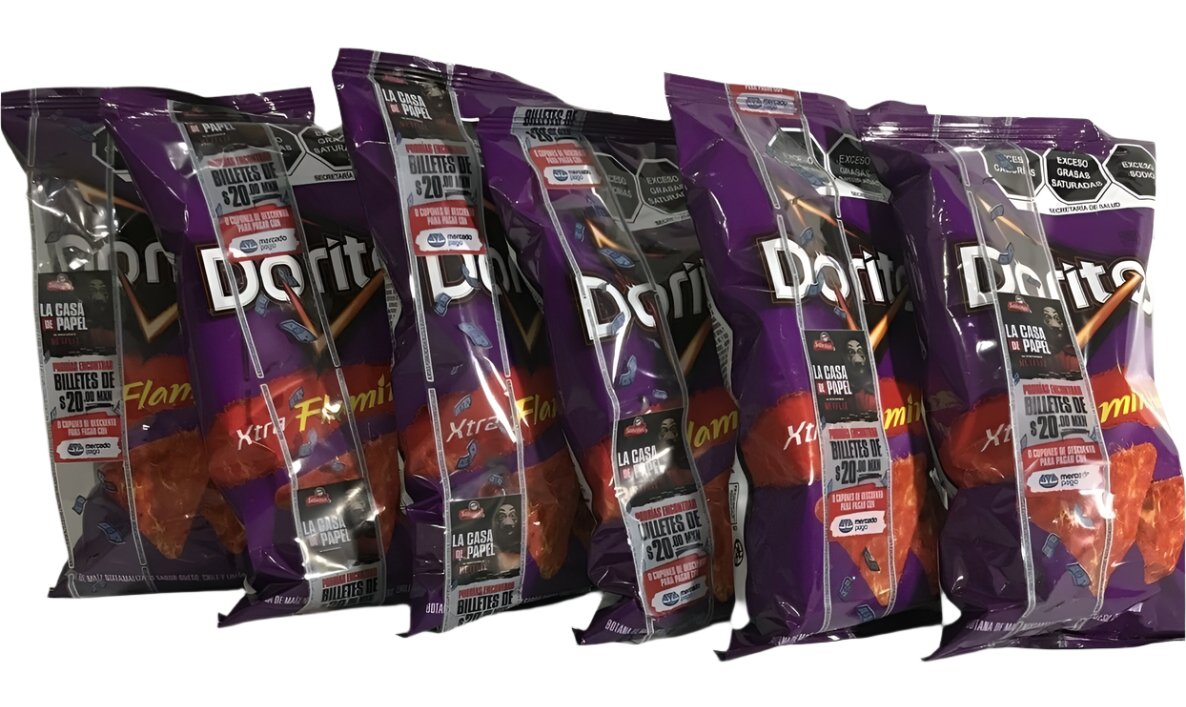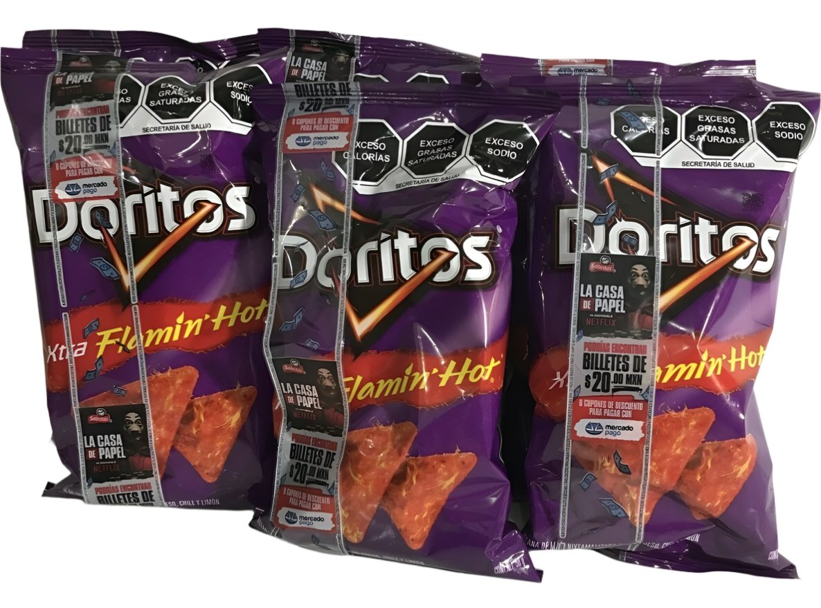6-Pk Sabritas Doritos Xtra Flamin Hot Doritos 62gr/2.19oz ea.