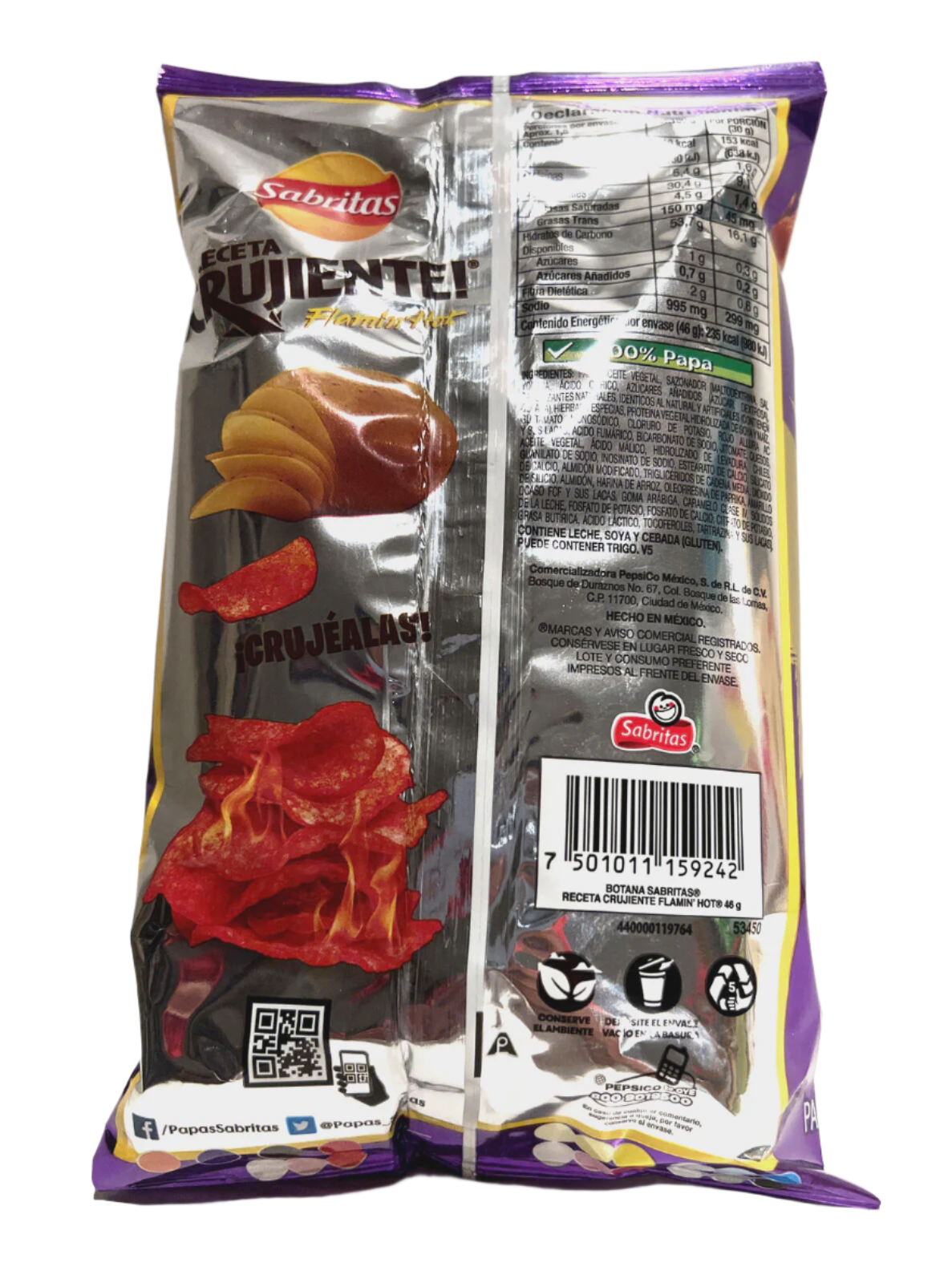 Get ready to spice up your snack game with our 6-Pack Sabritas Receta Crujiente Flamin Hot Potato Chips! These oven-baked chips pack an extra crunch and a fiery kick that will leave your taste buds begging for more. Each bag contains 46 grams (1.62 ounces) of deliciousness. Try them now!