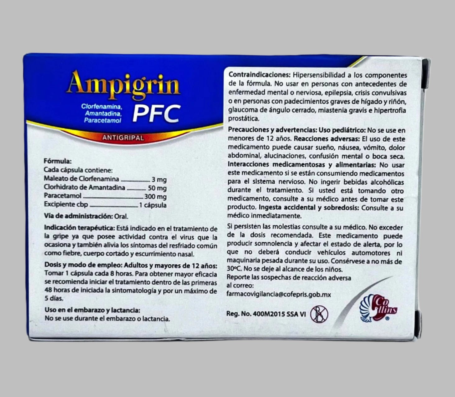 Ampigrin Antigripal is a powerful combination of Chlorphenamine, Amantadine, and Paracetamol, formulated to effectively relieve flu symptoms. With scientific and objective language, our professional-grade product provides proven relief from fever, congestion, and body aches. Trust the expert-recommended Ampigrin Antigripal for fast and effective flu relief.