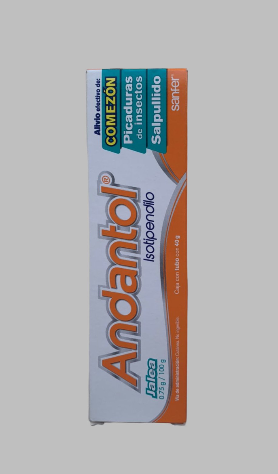 Andantol Jalea/Jelly is a 40g over the counter isothipendyl jelly. Soothe and relieve itching caused by skin irritations or insect bites with this effective jelly. With isothipendyl as its active ingredient, it provides fast relief with a simple and convenient application. Dermatologist recommended for all skin types.