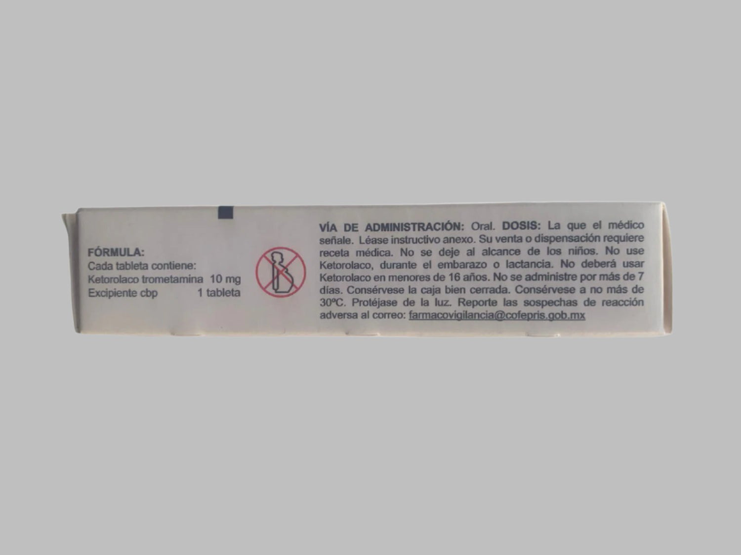 Professionally formulated with 10mg of ketorolac, a non-steroidal anti-inflammatory drug, our Ketorolaco 10mg provides targeted relief for pain and inflammation. Don't let discomfort hold you back, trust in our scientific expertise for fast and effective results.