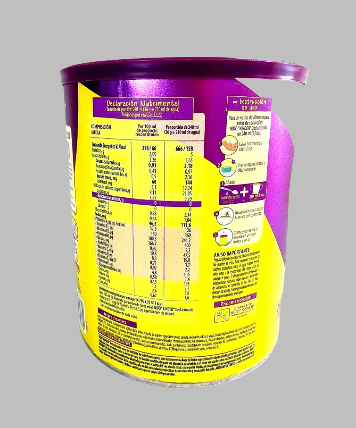 Nestle Nido Non-Lactose Powdered Milk ages 1-3/ Nestle Nido deslactosado 800gr